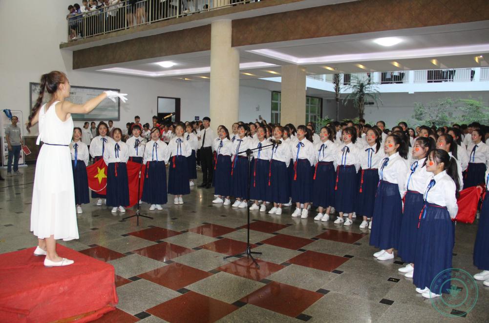 班歌是一个班级“软文化”的缩影,海棠学子将用音乐,用歌声,抒发对伟大祖国深深的挚爱;将伴随红歌激昂的旋律,去讴歌那段激情燃烧的岁月。比赛期间,参赛学生热情洋溢,声音洪亮,指挥员手势准确,富有激情,观众掌声不断,一次次将比赛推向高潮。