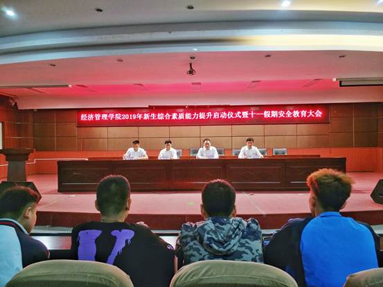 为进一步提升新生的综合素质,加强法制观念和安全意识,防止校园安全隐患,9月27日晚,经济管理学院2019年新生综合素质能力提升启动仪式暨十一假期安全教育教育大会在学术报告厅顺利举行。出席此次会议的领导有学院办公室副主任、保卫处处长王琪、经济管理学院院长尚海洋、副院长秦志春,学院2019届全体新生参加。会议由学生科科长王海利主持。