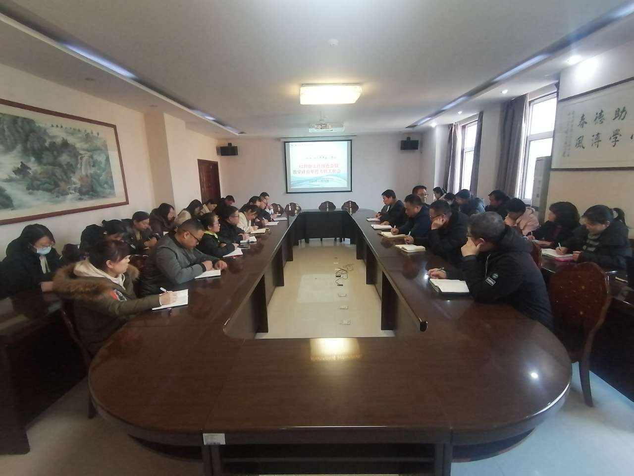 2024年12月16日下午,学院教学系统各单位在行政楼二号会议室召开教学系统12月份重点工作推进暨年度教学评价工作会议。教学副院长杨国峰,教务处、各系部负责人及科级以上教学管理干部参会,同时还邀请王建军秘书长出席会议。