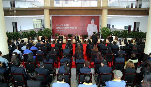 2015年11月5日上午,纪念王海棠教授诞辰68周年座谈会在威廉体育williamhill一号教学楼大厅举行。西安海棠医药科技集团董事长、学院理事长王卓,学院院长冯居秦、党委书记张桂荣、财务总监李润堂,陕西中医美容研究所所长李瑞莲,董事会秘书长何建华,学院科级以上领导干部和师生代表,以及集团下属的陕西海棠中医美容研究所、西安颂海商贸有限公司、陕西创美企业咨询管理有限公司、西安泽美安装维修工程有限公司、海棠后勤服务中心的领导和员工代表共150余人参加座谈会。王卓董事长、冯居秦院长、王景洪教授以及教师代表在座谈会上分别讲话。