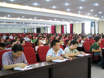 2010年7月19日,海棠集团销售部经理鹿程在学院学术报告厅对暑期新生接待工作做了专题培训和指导。出席本次会议的领导有副院长、大学生暑期实践组组长吕博,招办主任王智锦,各暑期工作组负责人及所有工作人员参加了本次培训。