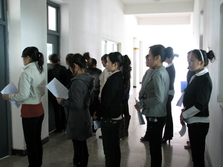 招聘会还未开始,等候入场的毕业生就已经在面试地点外排成了长队,他们脸上自然的笑容告诉我们他们对自己充满信心。招聘现场,面试官以让学生进行自我介绍、提问等方式对应聘者进行考核。