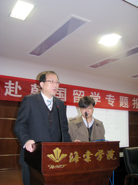 韩国大邱未来大学李相硕教授向在场学生介绍了韩国大邱未来大学的相关情况。