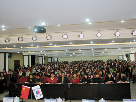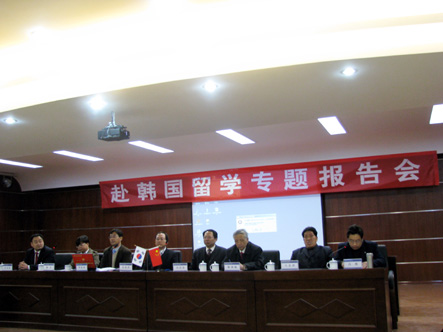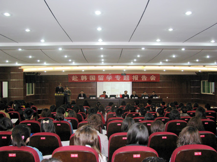 2010年3月25日上午,学院中医美容学院全体学生及部分专职老师在学术报告厅听取了赴韩国留学专题报告会。院长冯居秦,副院长蒋国瑜、王景洪、吕波,院长助理许春海及韩国大邱未来大学国际交流学院院长孔政泽教授,韩国大邱未来大学李相硕教授出席了会议。副院长吕波主持会议。