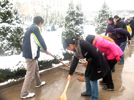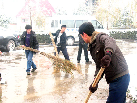 在这次清理积雪的活动中,连锁0901班的同学不怕辛苦,不畏严寒,冒着大雪清理路面,不仅为全院师生出行创造了便利出行条件,同时也展现了连锁0901班同学乐于助人,勇于奉献的良好品德。