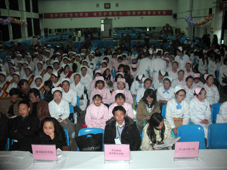 为了深化职业教育教学改革,提高教学质量,建立“校校有比赛,层层有选拔,省上有竞赛,全国有大赛”的职业教育技能竞赛序列,由陕西省教育厅,陕西省人力资源和社会保障厅主办,西安市卫生学校协办的为期两天的“慧文杯”2009年陕西省中等职业学校护理技能大赛”于2009年12月16日在西安卫生学校学生活动中心隆重举行。