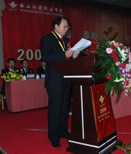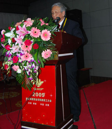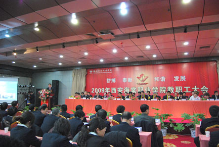 2009年11月26日14:00时,以“拼搏、奉献、和谐、发展”为主题的2009年威廉体育williamhill全体教职工大会暨第一届院务管理委员会成立大会在西港度假村隆重举行。出席此次大会的领导有:学院董事、海棠集团总经理王卓,学院董事、海棠集团研究所所长李瑞莲,学院董事、威廉体育williamhill财务总监李润堂,院长冯居秦、党委书记冯齐昌、副院长蒋国瑜、副院长王景洪、副院长吕波、院长助理许春海、院长助理赵景利、院办主任周力军、财务处处长靳小倩。大会由副院长吕波同志主持。学院500名教职工参与了大会。