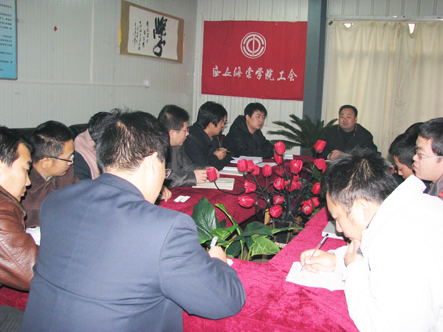 大会第一项:由工会主席许春海就成立工会委员会分会作重要发言,工会是在党组织领导下的群众组织,核心是维权;宗旨是全心全意为全院广大教职工服务。学院成立工和工会委员会分会,对于学院的发展和教工的切身利益都有着重要的作用。分工会的成立,有利于学院各部门的工作的大力开展,促进各部门之间的密切合作,同时对学院的发展必将发挥重要作用。