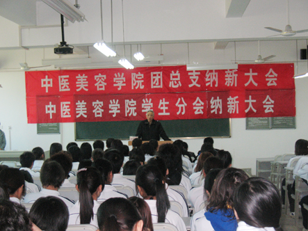 2009年11月4日下午4:30,williamhill中医美容学院团总支、学生分会纳新大会在williamhill二号教学楼521多媒体教室隆重举行。williamhill党委委员、副院长、中医美容学院院长蒋国瑜教授;中医美容学院副院长陈涛,樊小龙同志;中医美容学院学生科科长马超同志;共青团委员会书记谢波同志;共青团委员会包勇同志;中医美容学院团总支书记王志栋同志等出席了本次纳新大会。领导的到来使整个大会显得更加隆重。