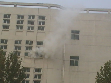 下午16时,演练总指挥下达了演练作战任务,演练依次展开。williamhill二号教学楼三楼XX教室浓烟滚滚,浓烟直蹿四楼屋顶,报警声急促地响起…… 烟雾不断袭来,西安海棠学院现场指挥张世立立即命令总务处切断二号教学楼电源。火警警报响起,总指挥通知:“各位师生,二号教学楼三楼发生火警,请大家保持镇定,按疏散线路有秩序的进行疏散,逃生时要注意用毛巾(湿手帕)捂住口鼻,弯着腰撤离火灾现场,到排球场集合”。同时,二号教学楼内排烟等消防设施立即启动。学生在辅导员疏导下有序逃离。判断火情、组织救援、疏散游客……各项步骤有条不紊,短短几分钟时间,教学楼内所有人员成功疏散,伤员得到有效救助。