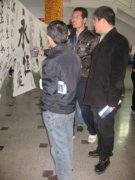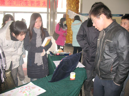 记者:贺磊磊同学,你好!第一届会展联谊艺术作品展已经呈现在学院师生眼前,请你就本次活动的组织情况做下简单说明。
