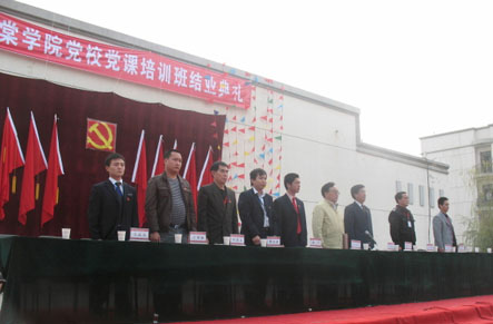 典礼在庄严神圣的国歌声中拉开帷幕。首先党委副书记党校校长王爱明做总结和重要讲话:党校党课培训从10月14日至10月27日共计20个学时,参加人数为276人。其中学生230人,教职工46人。结业典礼上总共给270人颁发了结业证书。党校开课培训阶段好的地方是学院党委和党校领导高度重视,培训学习重点突出、针对性强、党委工作善始善终,学员学习认真收获大、培训党课方式灵活多样。但也存在一定的不足之处。党课虽已经结业,但希望所有入党人员能够继续积极学习党的相关政策,学习党的精神,提高自身素质和政治修养。