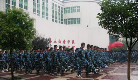 2009年8月21日下午忽小忽大的雨一直在下,但我校09级新生军事训练工作仍有条不紊的进行着。此次军训分男女连队,总计17个连队,军训为期两周。