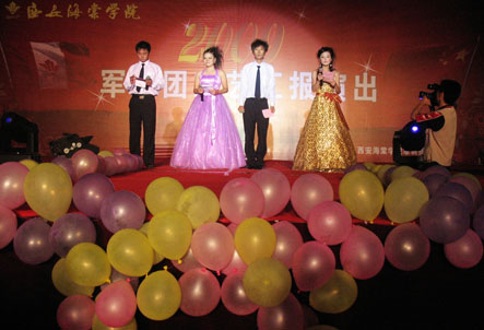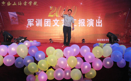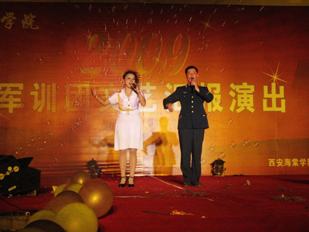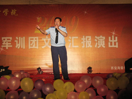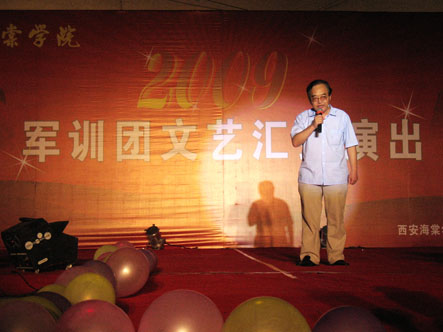 为充分展示当代大学生的人格魅力和精神面貌,用青春构建和谐,谱写美丽人生的青春章。2009年8月31日晚,williamhill09级新生军训团军训汇演在williamhill顺利举行。陕西海棠集团总经理王卓同志,williamhill院长冯居秦同志,军训团团长王鉄练同志,副院长兼军训团政委吕博同志,副院长蒋国瑜同志,副院长王景洪同志,院长助理赵景利同志以及学院各处室的领导出席并观看了演出。演出中各位领导对此次演出给予了高度的评价。