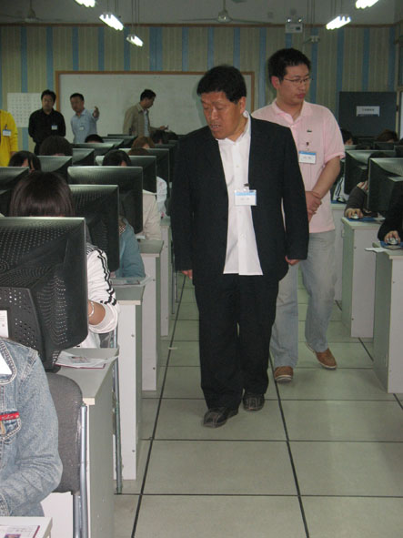 巡考完毕,王院长和吕院长指出:本次高新考试学院上下十分重视,网络信息中心的准备工作、监考工作以及考场环境都相当不错,我们代表全院表示感谢。高新考试是对学生本学年计算机技术学习成果的检验,同时也对他学习的肯定,从考生中我们了解到他们也为本次考试做了不少努力,我们希望考生尽全力参与考试,考出满意的成绩。在以后的教学中,学院将会会申报计算机等级考试考点,给学生多提供更多的技能考试机会,让他们有更好的发展前景。