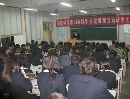 学习实践科学发展观活动领导小组副组长、副院长蒋国瑜作学习实践科学发展观活动的具体部署,他认为:我们要深刻认识到本次学习实践活动的重要性,发扬党在十七大精神中的中药举措精神,学院党委要以培训班的形式加强对党员的教育,为学院的经营与发展作坚实的基础。党员要充分发挥模范带头作用,立足长远,突破在学习科学发展观时期的障碍,推进机制和体制改革与创新。蒋院长还指出:贯彻落实科学发展观的根本要求是: