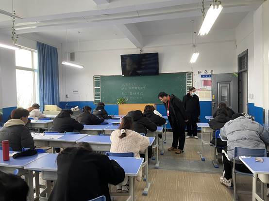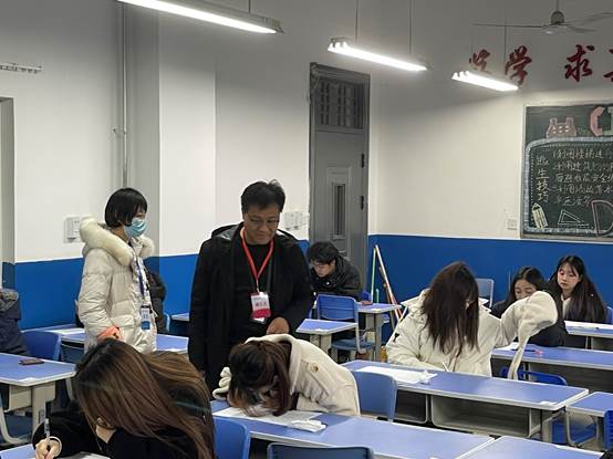 考试期间,相关领导亲临考试现场指导工作,监考老师能按时到岗,严格履行考试职责;广大学生自觉遵守考试纪律,认真答题;相关处室及系部负责人、督导处工作人员不定时巡视考场情况,考场秩序井然。