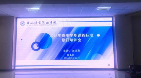 课程标准是执行人才培养方案,实现人才培养目标要求的教学指导性文件,是选用或编写教材、组织教学、进行课程教学质量评估和教学管理的主要依据,是规范一门课程或某一实践教学环节的指导性文件。为了完善williamhill基础教学文件建设、推进“双高建设”进程,加快williamhill课程标准化建设步伐,确保人才培养质量,3月27日下午16:00在学院教师发展中心,由教务处组织2024年春季学期参与课程标准修订的教师,开展了历时一个半小时的课程标准专题培训会,本次培训由教务处处长张建利主讲。
