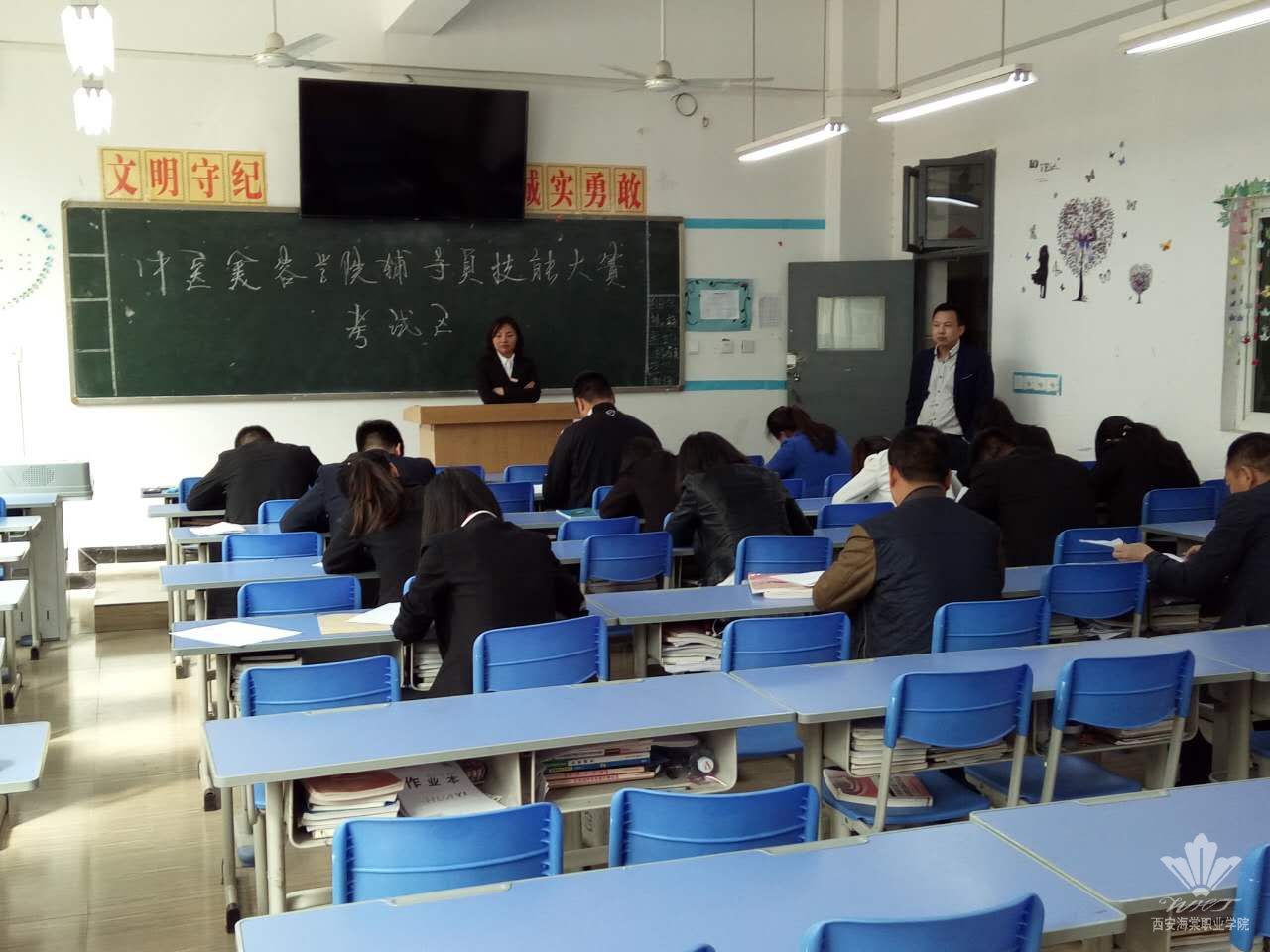 学院高度重视本次比赛,各二级学院在接收到文件起积极组织初赛活动。初赛为笔试测试,各二级学院院长、主管学生工作的副院长及学生科科长监考。本次笔试以基础知识测试为主,综合考察了辅导员的语言表达能力和硬笔书法能力,考试内容涉及学生手册、大学生资助及医保、思想教育和心理辅导等多方面知识,全方位的展现了辅导员的个人素养、知识储备和专业技能。笔试期间,各辅导员认真答卷,考场秩序井然。
