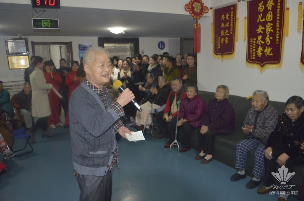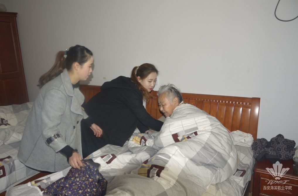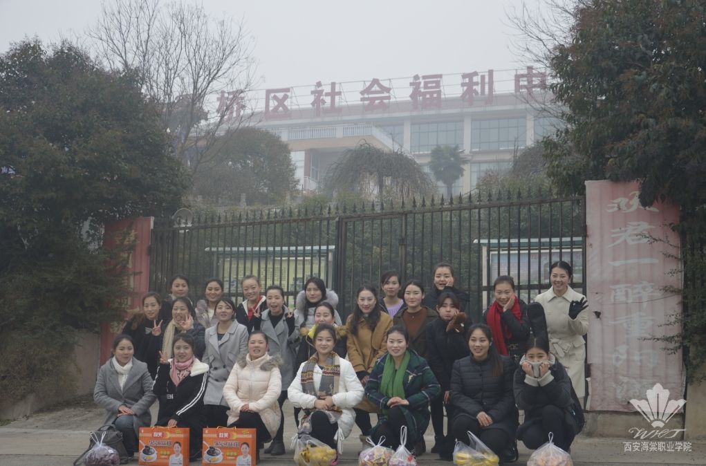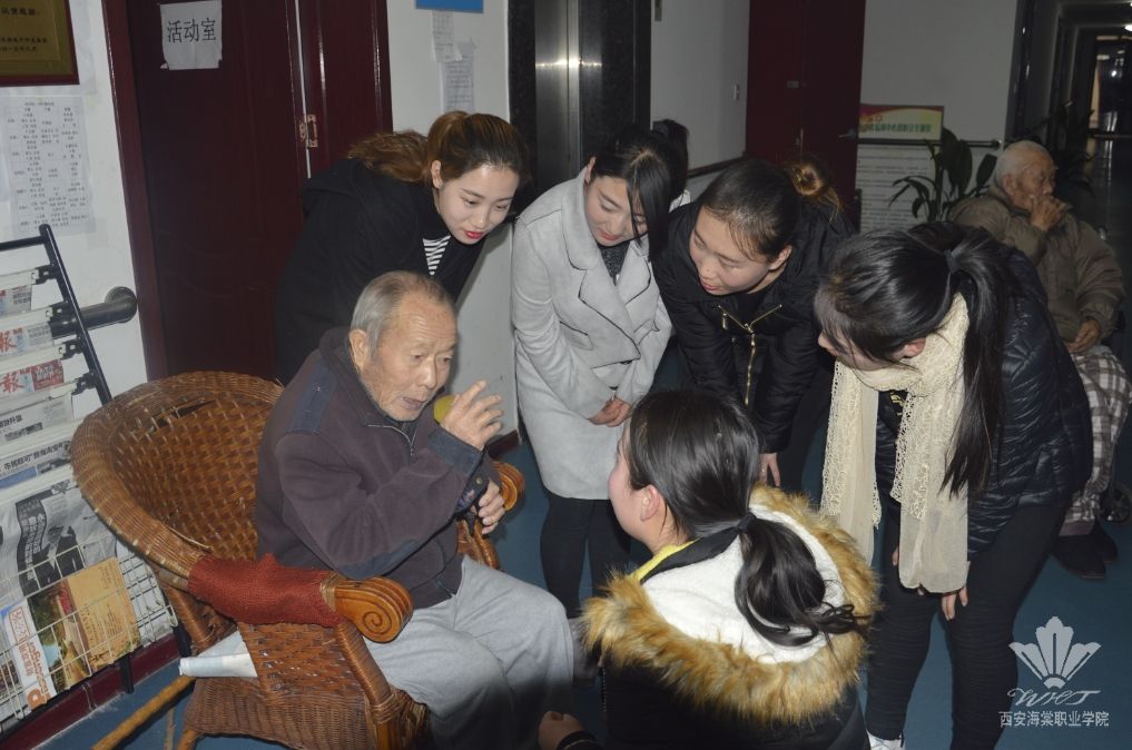 12月23日西安海棠技师学院团委携手浙江安杰玛化妆品有限公司组织学院14级岗前培训学生前往灞桥区社会福利中心为老人服务。