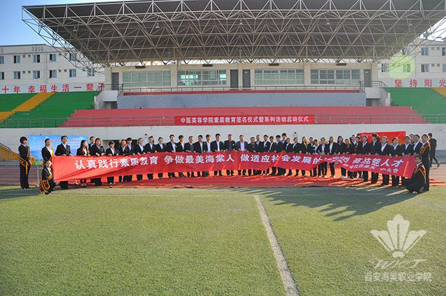 为进一步加强校园文明,传承优良校风学风,推动素质教育工作的深入开展。10月14日下午,中医美容学院双素质教育签名仪式在足球场顺利举
