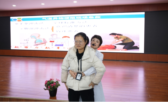 接着,王教授介绍了气道异物梗阻的紧急处理方法,详细演示了海姆立克急救法的操作步骤。