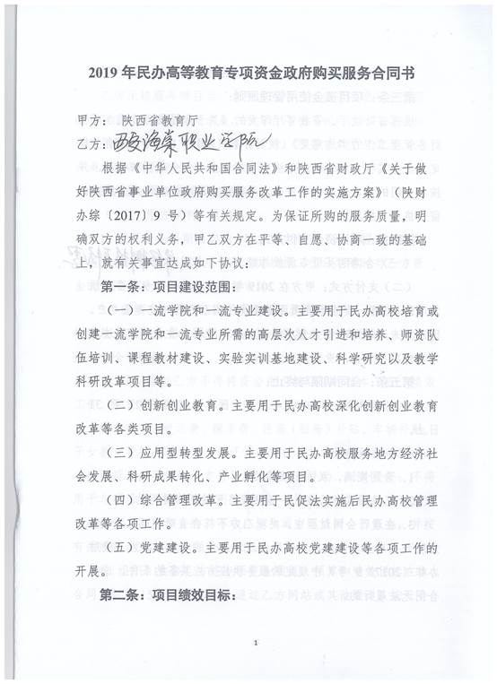 【公示】2019年民办高等教育专项资金政府购买服务合同书公示