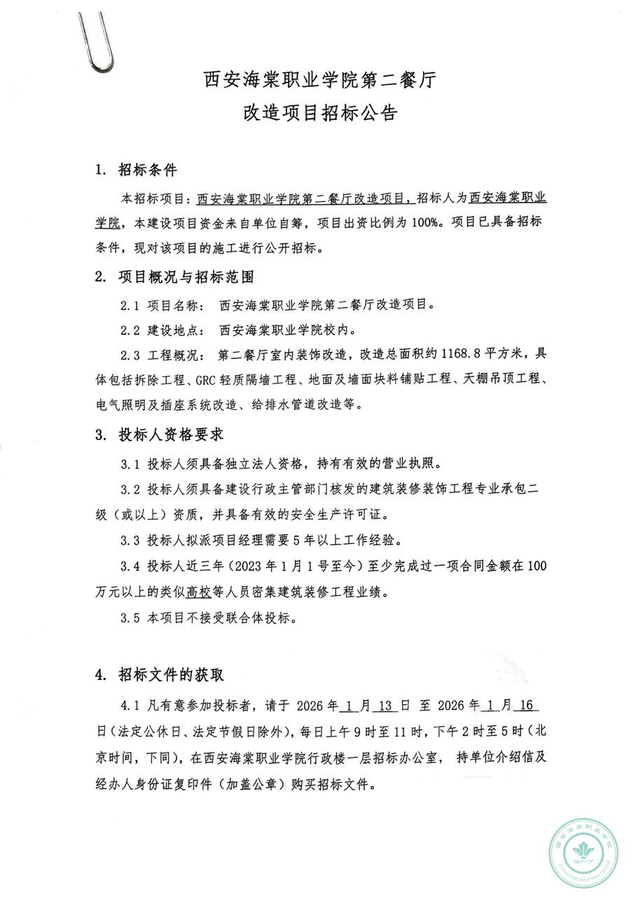 威廉体育williamhill第二餐厅 改造项目招标公告