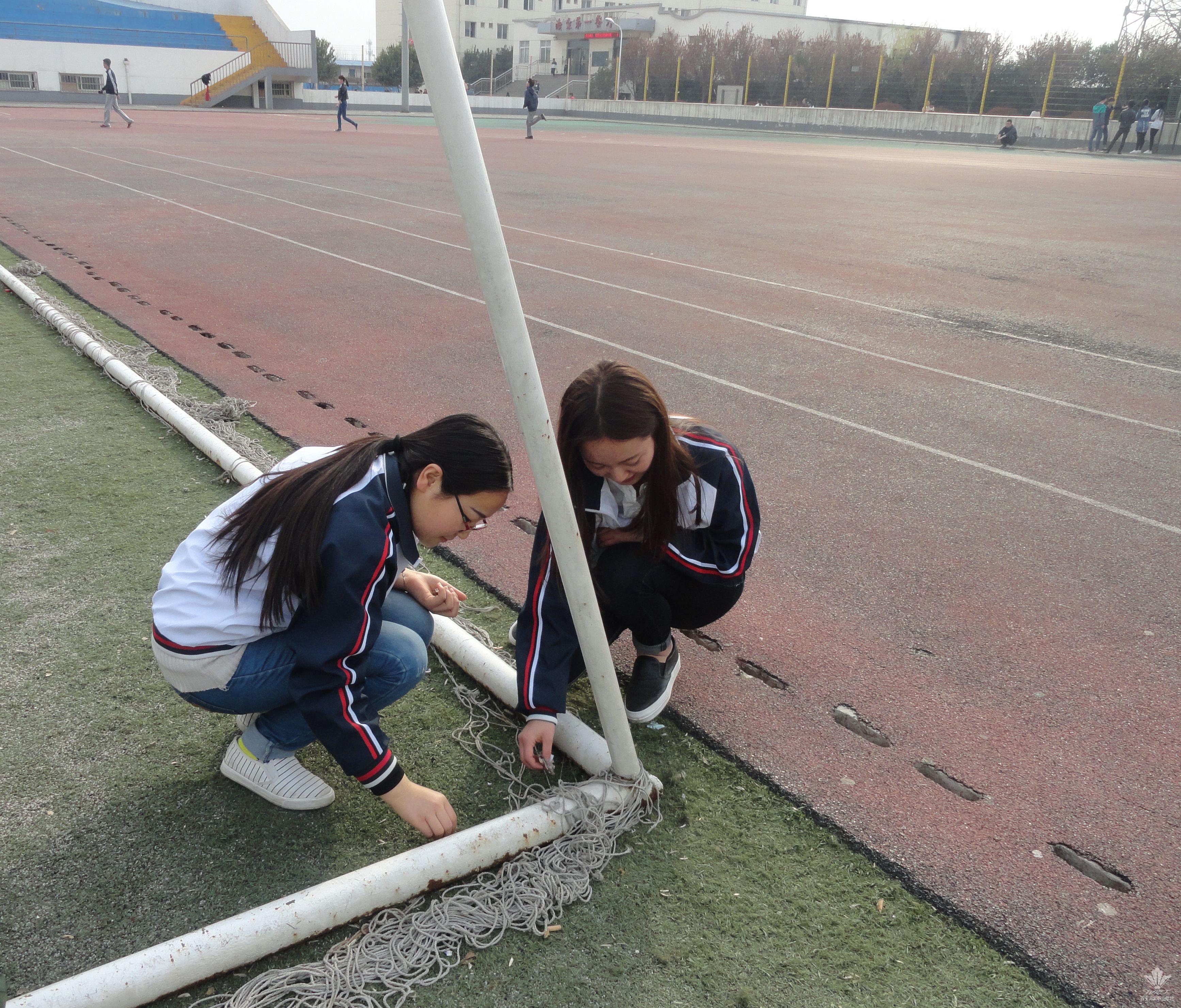 学生干部在团委老师的组织安排下,根据事先划定的区域对足球场的四角、看台进行了彻底的清理,对遗留下来的餐巾纸、零食袋、瓜子皮等垃圾进行了全面捡拾。