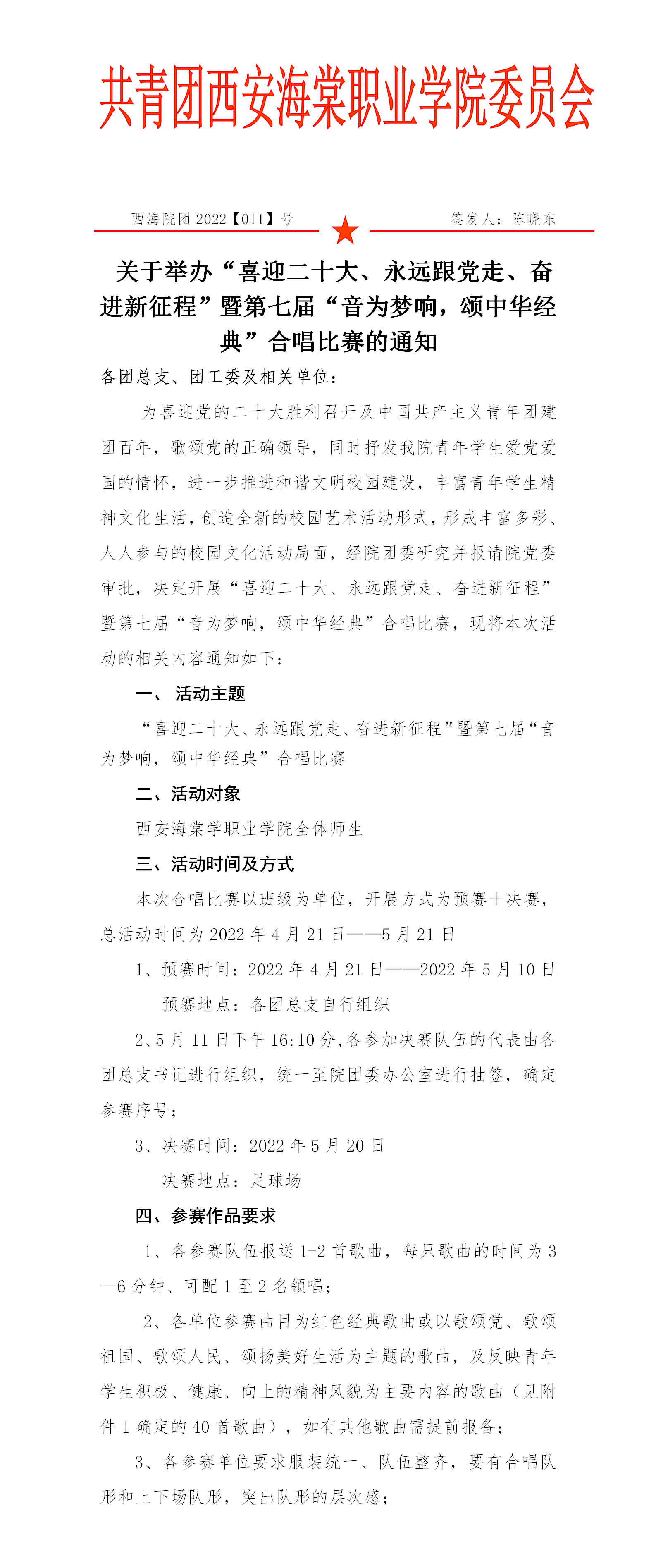 关于举办“喜迎二十大、永远跟党走、奋进新征程”暨第七届“音为梦响,颂中华经典”合唱比赛的通知